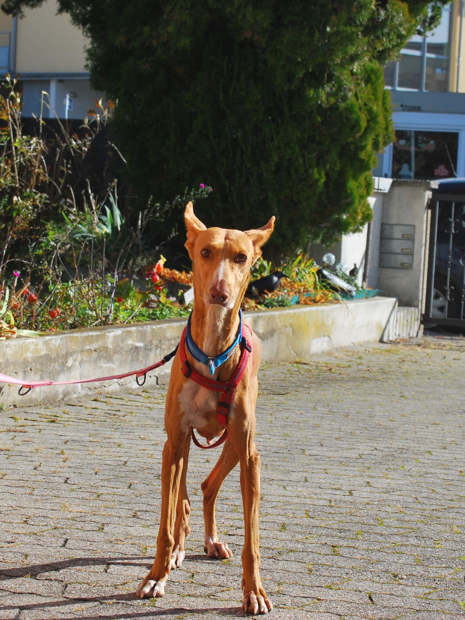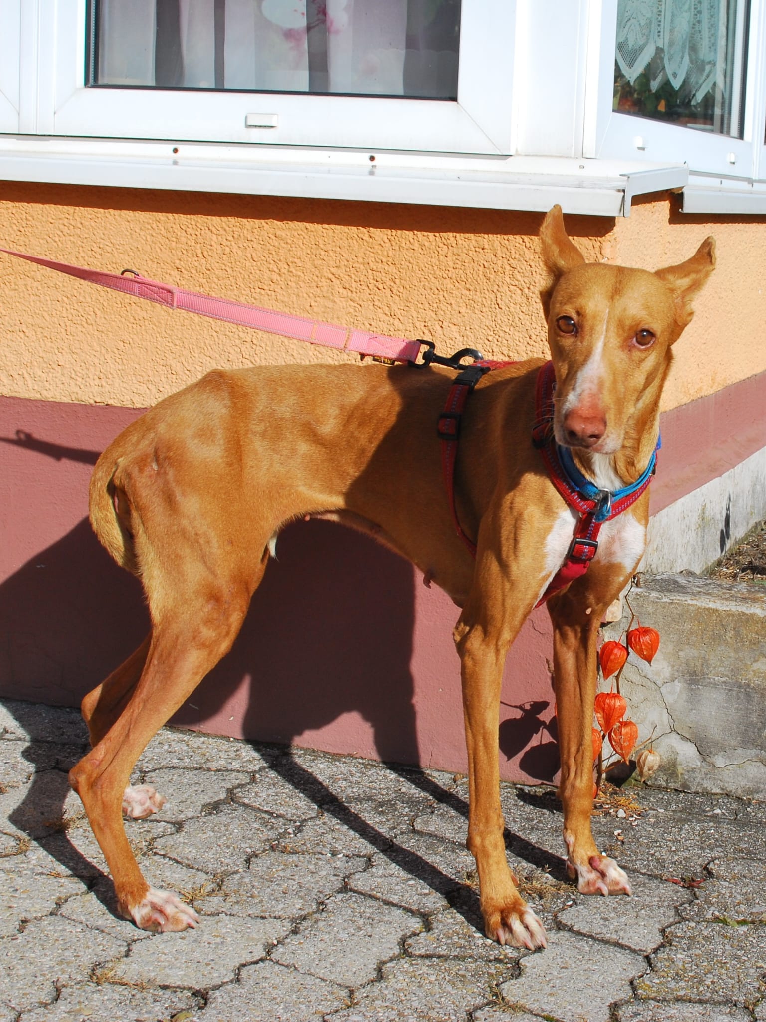 Estrella ist eine aktive, lebensfrohe und sensible Podenco-Hündin, die noch viele schöne Jahre vor sich haben kann. Podencos gelten als zäh und langlebig – Estrella bringt also beste Voraussetzungen für ein erfülltes Leben an der Seite liebevoller Menschen mit. Sie versteht sich gut mit anderen Hunden, ist etwa kniehoch und wiegt 19 kg.