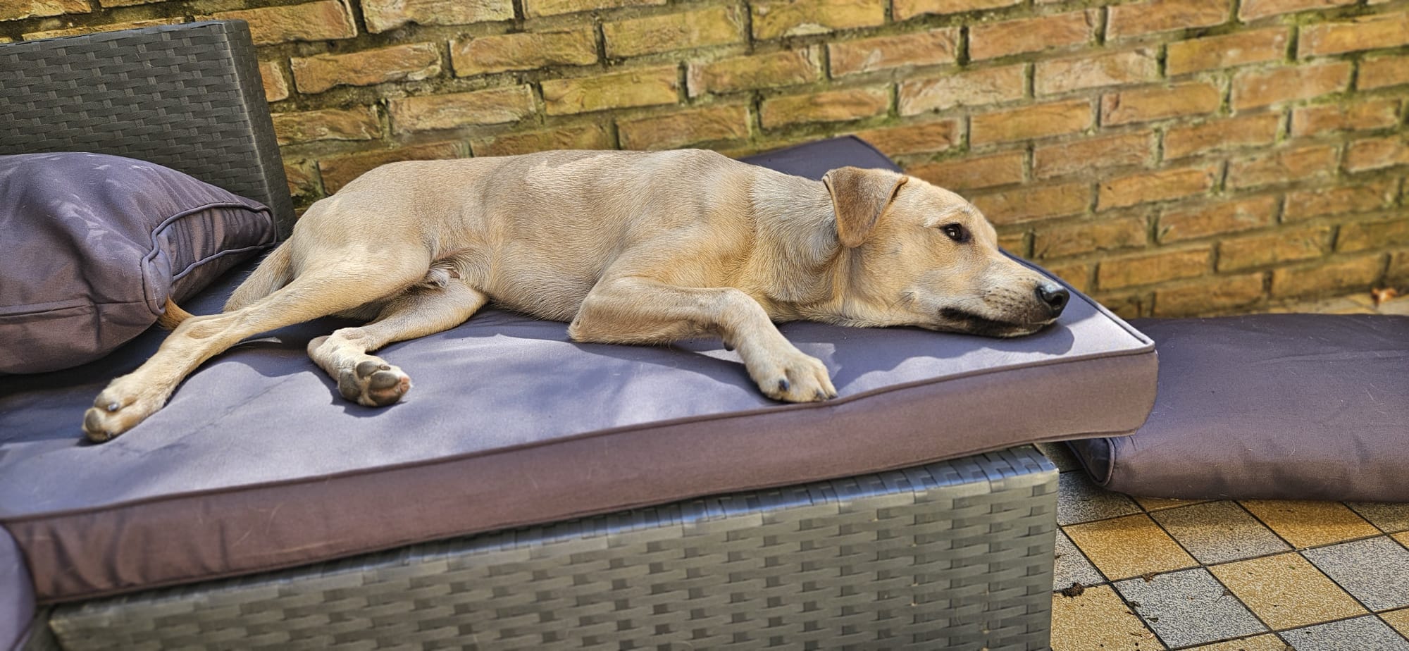 Hui Buh ist ein kastrierter Rüde, der fremden Menschen gegenüber zunächst unsicher auftritt. Gibt man ihm jedoch etwas Zeit und eine verlässliche Orientierung, taut er auf – und zeigt sich dann als echter Zuckerhund: charmant, witzig, anhänglich und ein kleines bisschen Macho. Genau diese Mischung macht ihn so besonders.